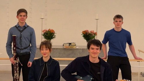 Kl. 13 runder vi dagen af med en koncert i kirken. En gruppe unge musikere på klaver, guitar, fagot, stryger og percussion byder på moderne fortolkninger af sange fra bl.a. The minds of 99, Sting og Sebastian, som alle handler om fællesskab og følelser i en urolig tid.